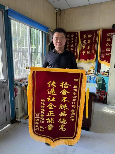 近日,市民廖先生將一面印有“拾金不昧品德高 傳遞社會(huì)正能量”的錦旗送到交發(fā)集團(tuán)公交一分公司工作人員手中,表達(dá)對(duì)11路駕駛員吳勇師傅拾金不昧行為的誠摯感謝。