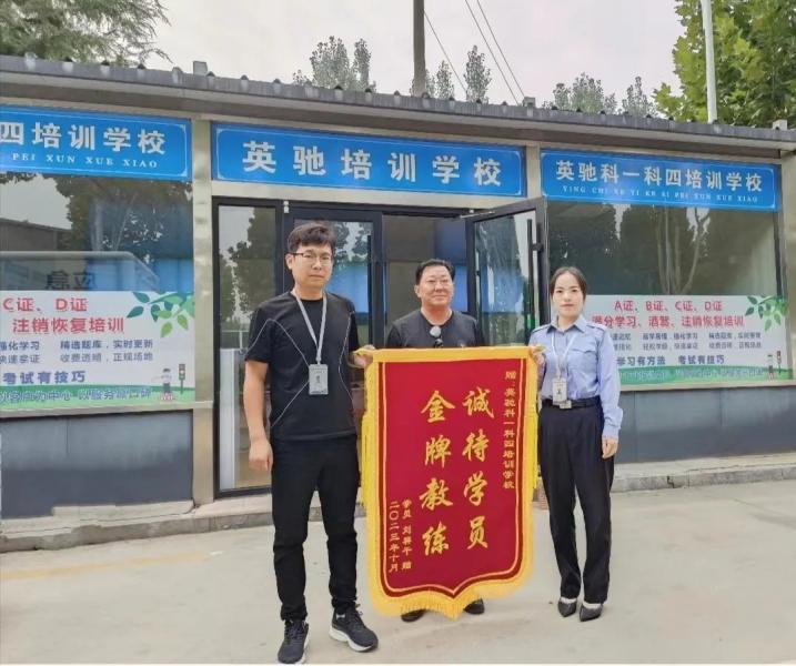 “感謝咱們英馳培訓(xùn)學(xué)校用心的指導(dǎo),我從報(bào)名到拿證僅僅用了2天的時(shí)間......”10月7日上午,D證學(xué)員劉先生來到交發(fā)集團(tuán)恒通公司,將一面寫有“金牌教練 誠待學(xué)員”的錦旗送到公司工作人員手中,對教練員的用心指導(dǎo)、貼心服務(wù)和專業(yè)教學(xué)給予高度評價(jià)并表示真誠的感謝。