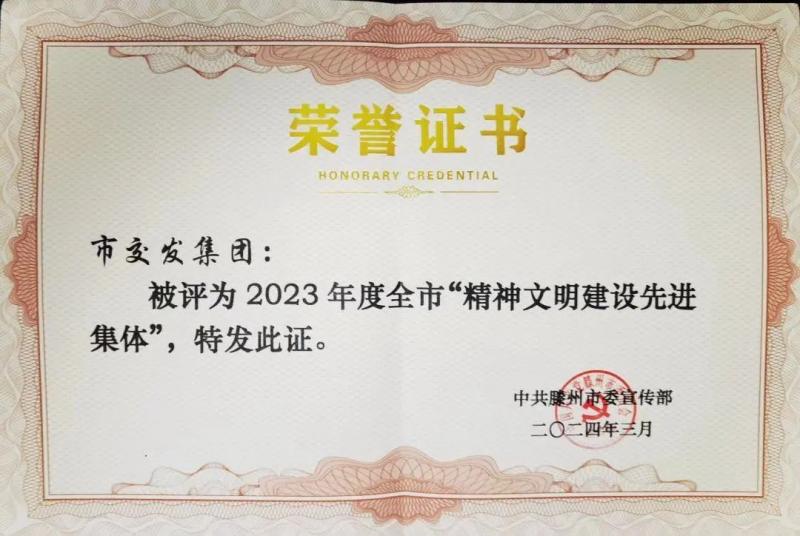 集團(tuán)將以此榮譽(yù)為契機(jī),持續(xù)深入推進(jìn)精神文明建設(shè),推動形成凝心聚力、開拓創(chuàng)新的良好態(tài)勢和濃厚氛圍,奮力譜寫集團(tuán)創(chuàng)新轉(zhuǎn)型高質(zhì)量發(fā)展新篇章,在加快“中華善城 現(xiàn)代滕州”強(qiáng)勢崛起進(jìn)程中貢獻(xiàn)交發(fā)力量、展現(xiàn)國企擔(dān)當(dāng)。