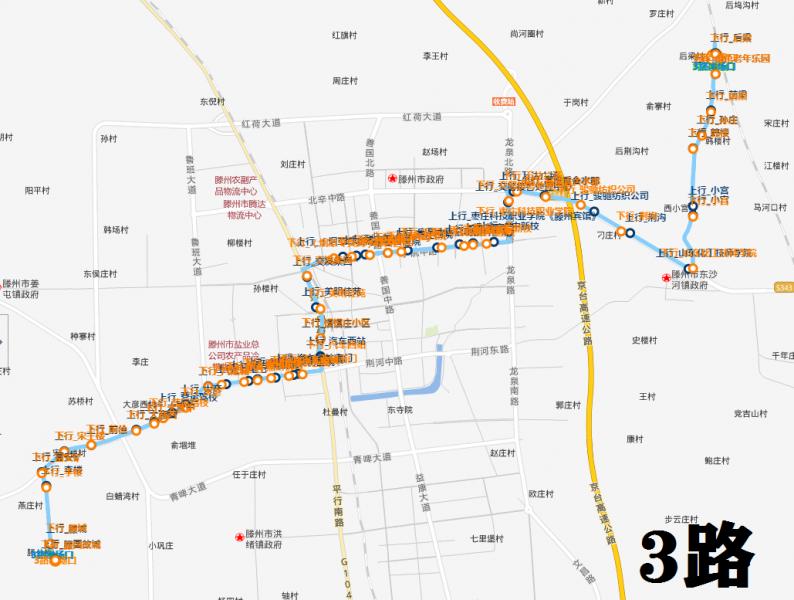 為進一步增強公交線網(wǎng)的覆蓋率,暢通我市東西部交通出行,1989年12月14日,3路公交線路開通運營五里屯—東沙河鎮(zhèn)政府。隨著我市經(jīng)濟社會的快速發(fā)展,群眾的交通需求不斷變化,3路線路經(jīng)歷了多次調(diào)整。1994年,運營線路調(diào)整為火車站—東沙河鎮(zhèn)政府。1998年又恢復(fù)了3路五里屯—東沙河鎮(zhèn)政府。1999年調(diào)整為火車站—東沙河鎮(zhèn)政府延伸至十六中。1999年10月3路延伸至前梁村。2004年8月4日,3路經(jīng)韓樓村分支運營至耿樓村。2006年8月9日,3路線分支運營的耿樓村延伸至滕州與山亭交界的宋莊村,形成了3路線末端分支運營格局。2006年9月27日,3路調(diào)整為火車站—平行路—龍山路—龍泉北路—北留路—東沙河—前梁分支運營。2015年12月29日,為方便滕國故城附近群眾出行,經(jīng)上級領(lǐng)導(dǎo)部門批準,優(yōu)化調(diào)整3路走向,填補滕國故城等路段公交空白,延伸至滕國故城,由前梁發(fā)車途經(jīng)北辛路、龍泉路、學院路、平行路、荊河路發(fā)往滕國故城方向,全程23km,票價2元。2017年1月1日起,3路公交車由有人售票改為無人售票,票價2元。